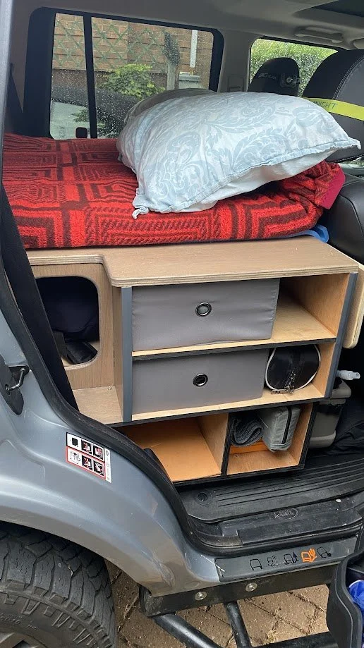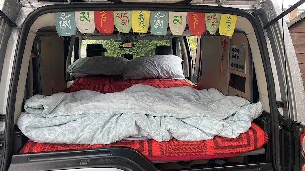 Before completing the full build, we were already using our Discovery for traveling and camping. Our setup was simple - we folded down the rear seats, added a mattress topper, and packed a few plastic boxes with our kitchen and camping essentials. Despite its simplicity, those trips gave us some unforgettable memories, just like our earlier adventures with the VW Touareg and its similar no-build setup.