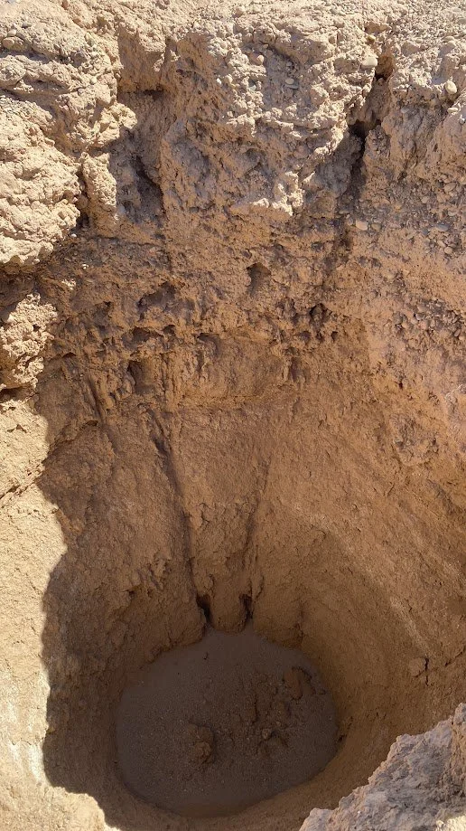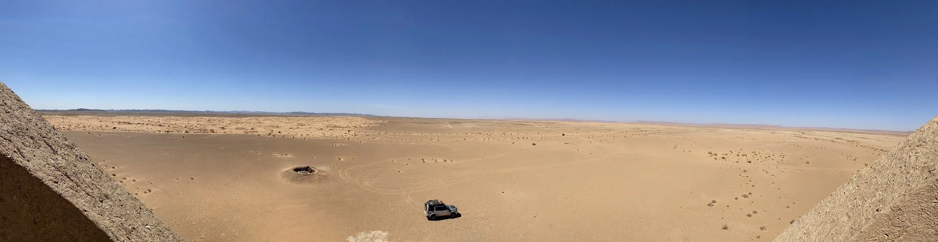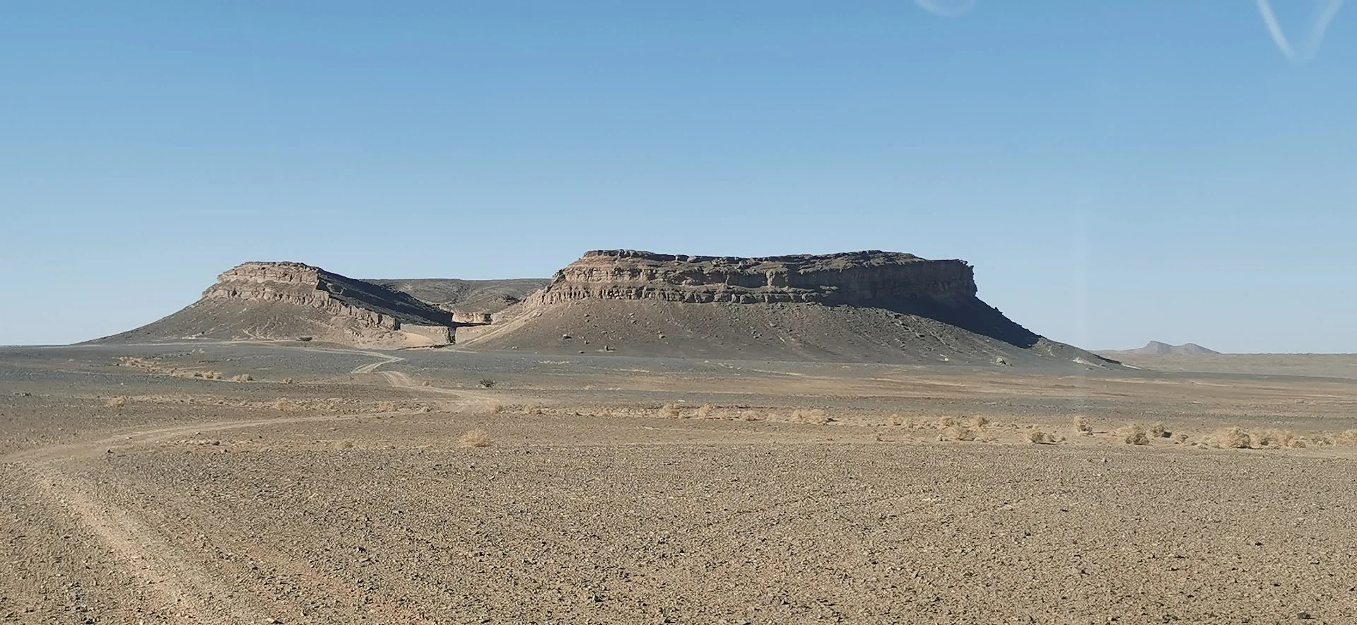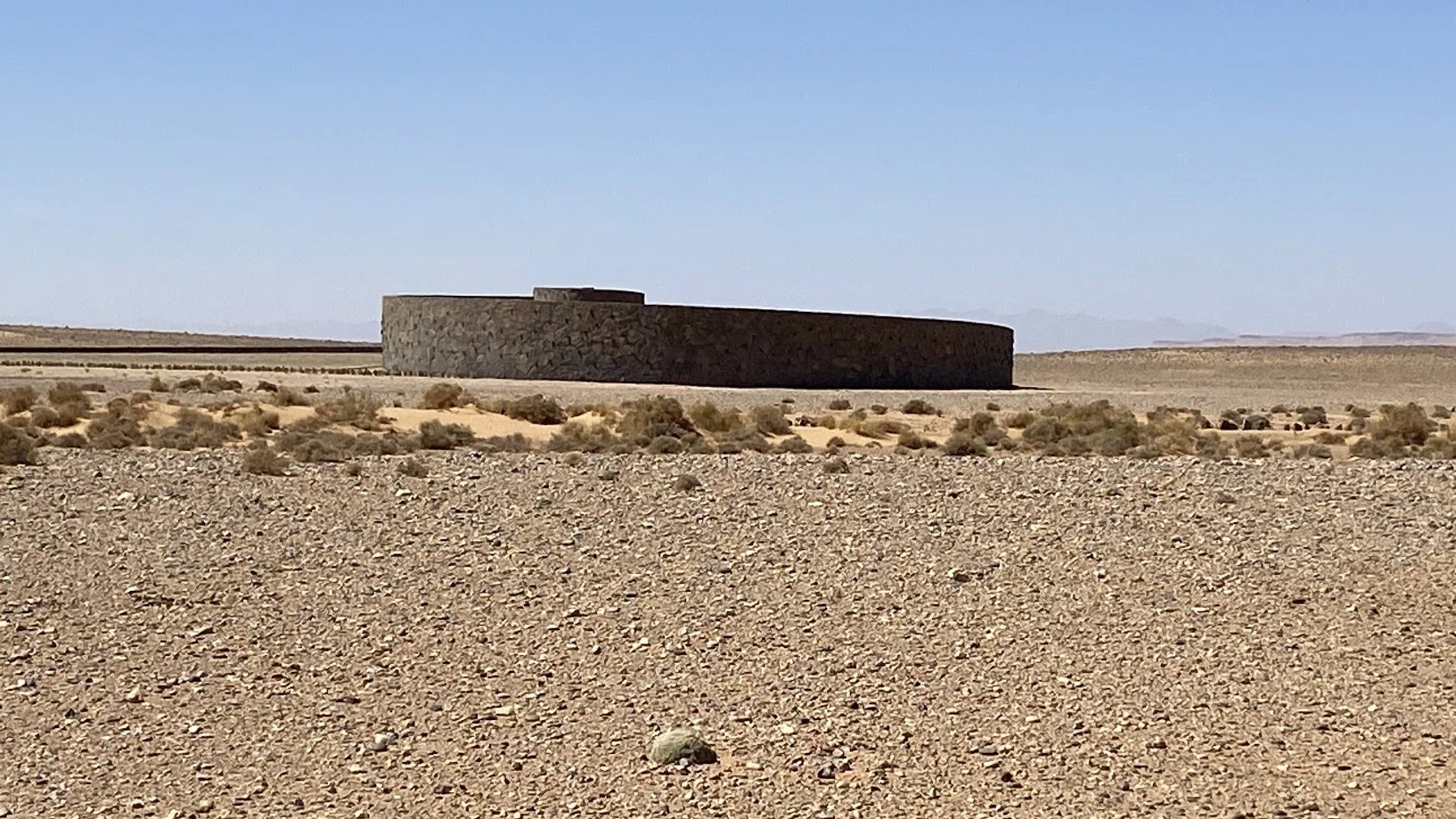 On the way back to the road we came across an abandoned and clogged khettara, a traditional underground irrigation system. After a short drive we reached Gara Medouar, also known as Jebel Mudawwar (“Round Mountain”). It is a horseshoe-shaped geological formation with a rich history. After the main wall was built to enclose it, the site was used for different purposes from the 11th century onward.