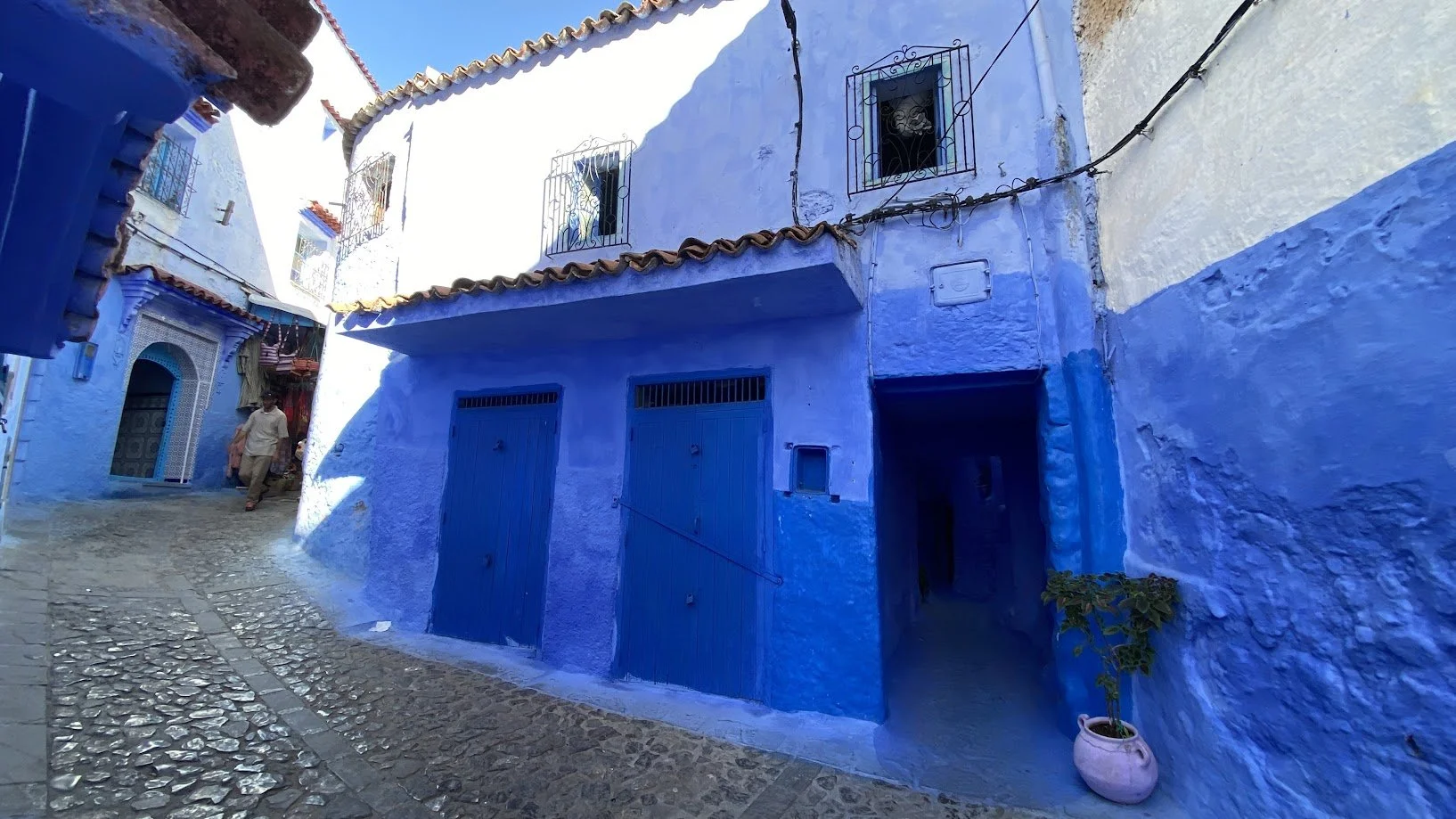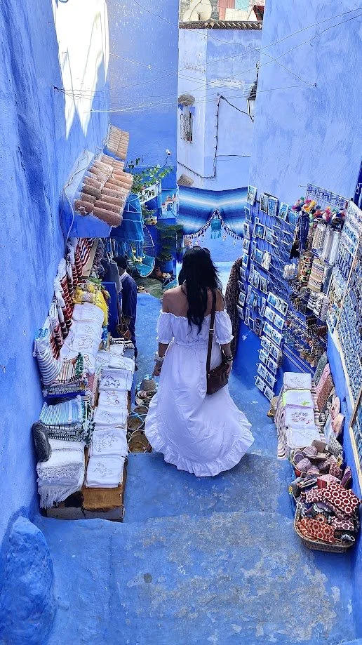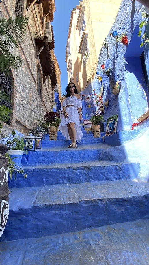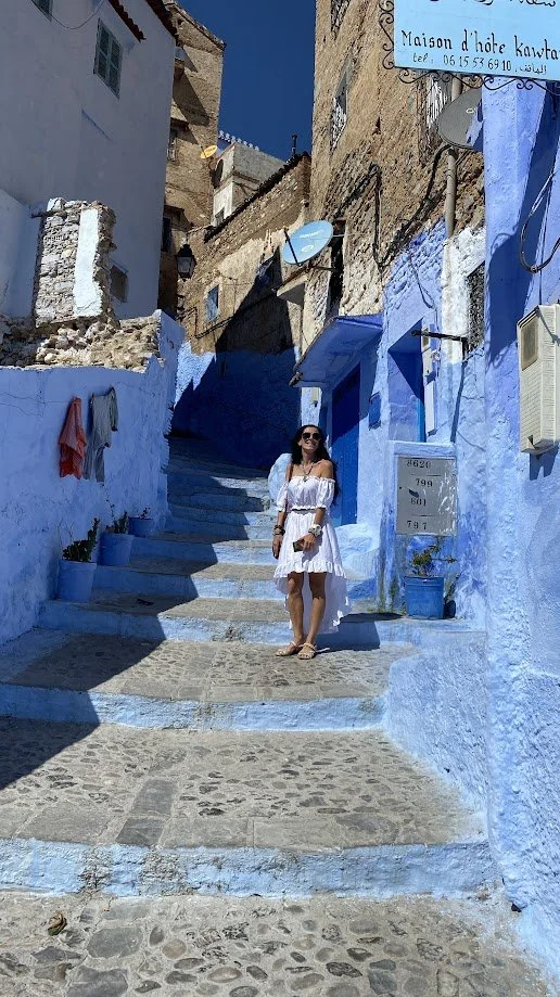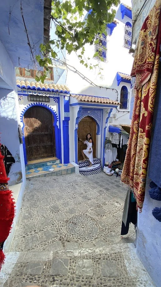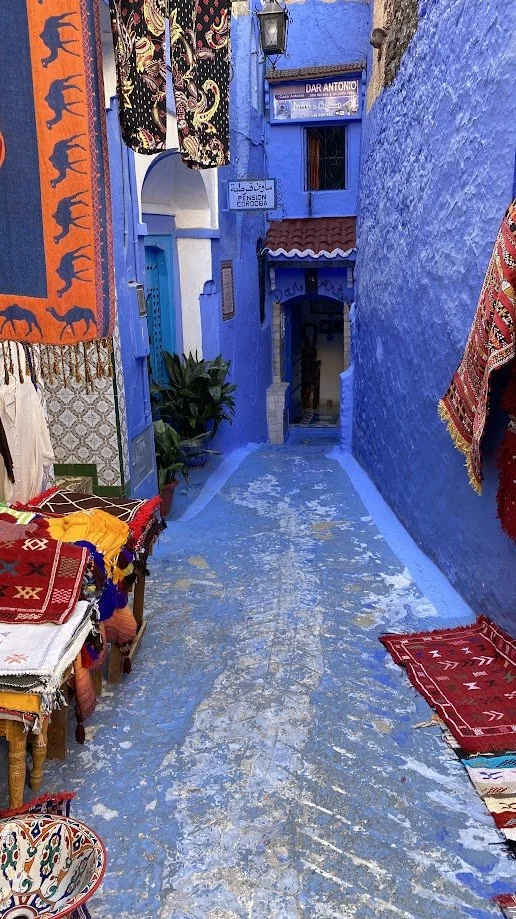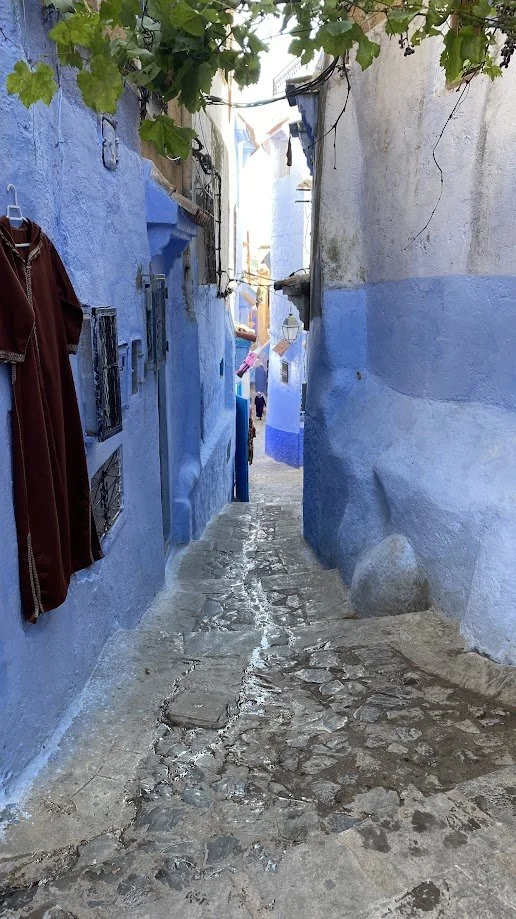 The next day, we arrived in Chefchaouen, the Blue Pearl of Morocco. The town is known for its blue-painted houses, narrow streets, and vibrant atmosphere. Compared to the remote mountains and desert we had been travelling through, it felt busy and more focused on tourism, with shops, cafés, and visitors everywhere. After a short stay, we headed back into the mountains to find quieter surroundings again.